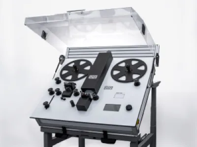 Spinner R is a multi-format winder and verification table from 8 to 35mm (capacity 600 meters). Equipped with a ground glass, a multi-function touch screen and a drive system without pinion or capstan, it can transport films with a minimum tension of 10 grams and a variable speed up to 300 frames/second.